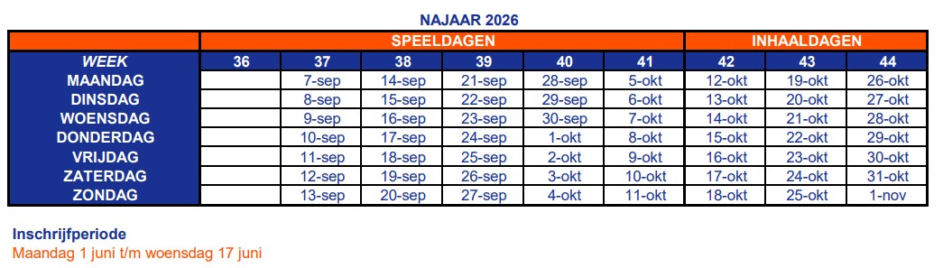 Tennis Najaarscompetitie 2026. 7 september t/m 1 november.