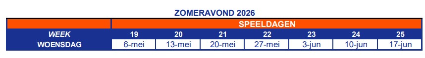 Tennis zomeravond 2026. 6 mei t/m 17 juni.