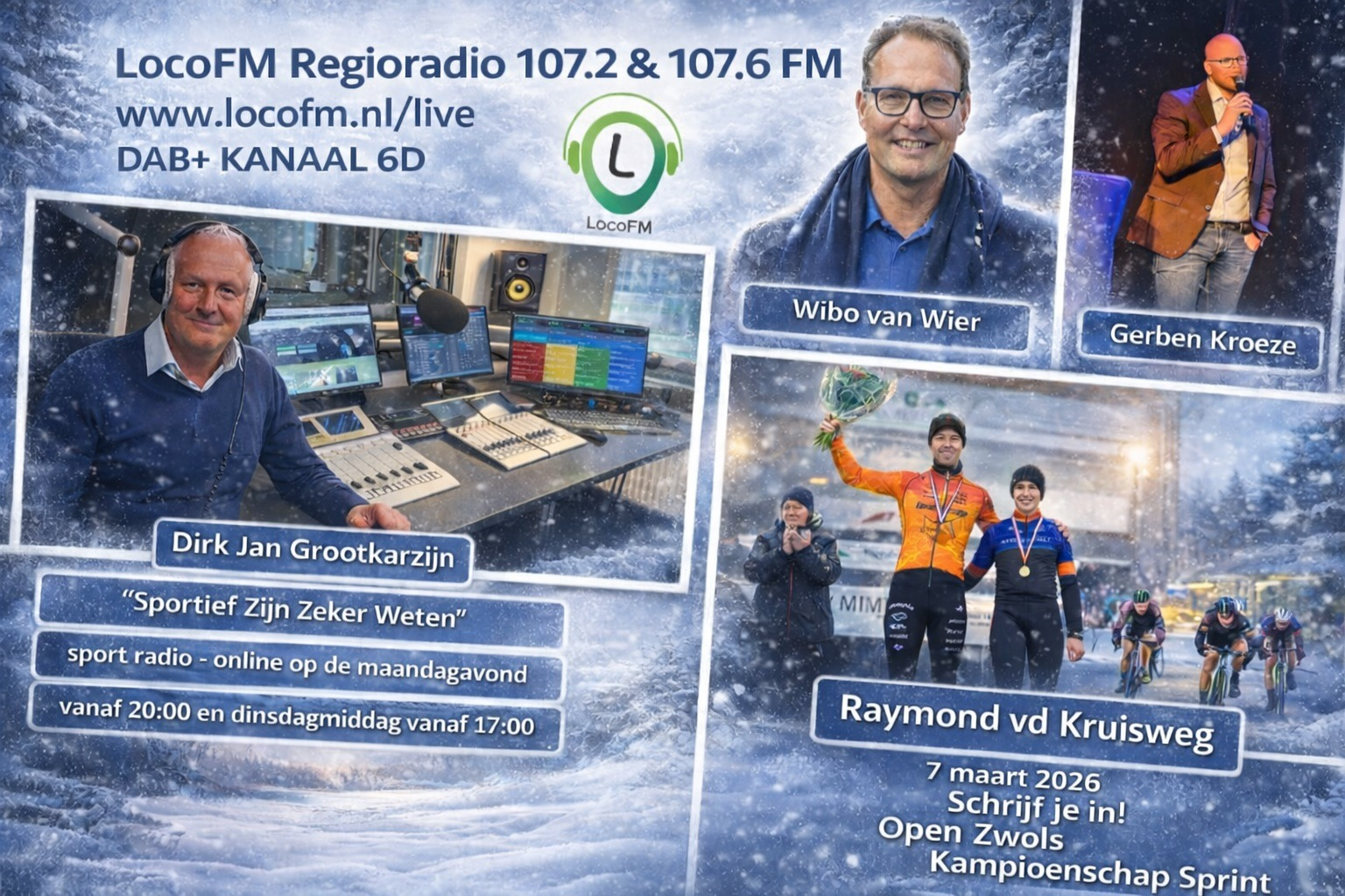 Maandag 12 januari is onze voorzitter Wibo van Wier te gast in het radioprogramma Sportief Zijn Zeker Weten. Dit programma op LocoFM wordt gepresenteerd door Dirk-Jan Grootkarzijn.